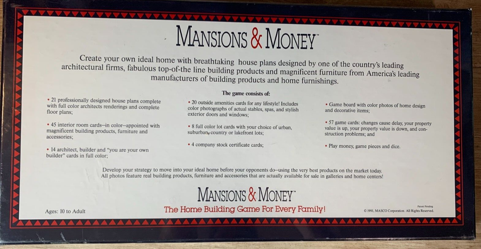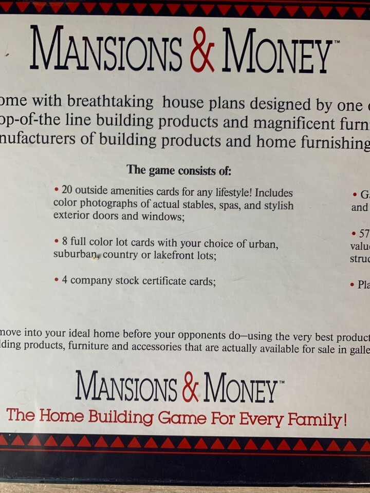 - Mansions & Money Board Game: Home Building Game By Masco: Unopened, Rare, NEW
