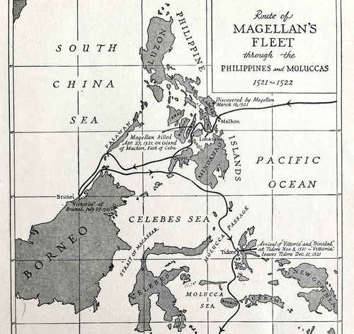 - Map 1930 Magellan's Route c1521-22 5.5 x 9" Expedition History Ephemera DWEE2