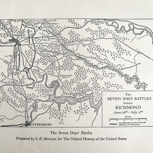 - Map 1930 Seven Days Battle Richmond 5.5 x 9" Virginia History Ephemera DWEE2