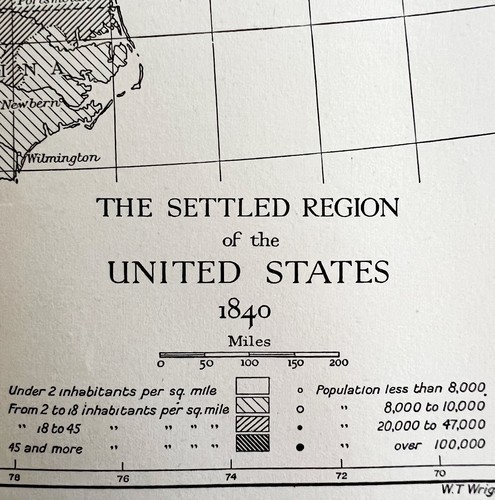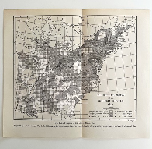 - Map 1942 Settled Region United States c1840 10 x 9" Settlement History DWW6B