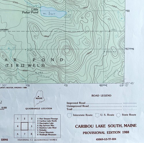 - Map Caribou Lake South Maine USGS 1988 Topographic Vtg Geo 1:24000 27x22" TOPO13