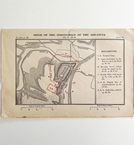 - Map Of Siege In Aduatuci Stronghold 1886 Victorian Caesar's Gallic War DWP4B