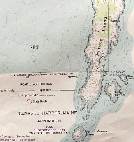 - Map Tenants Harbor Maine 1973 Topographic Geo Survey 1:24000 27 x 22" TOPO9
