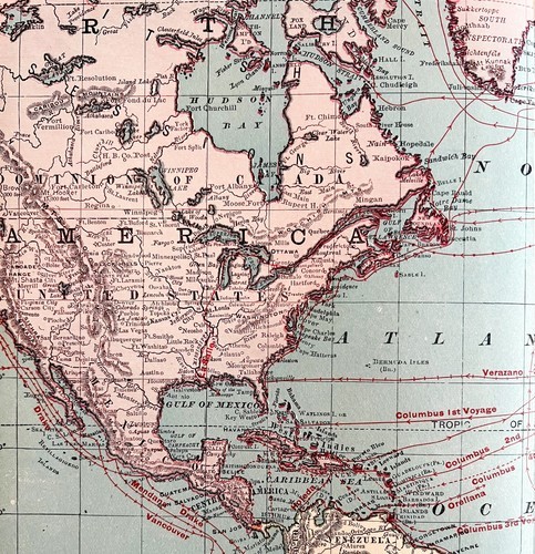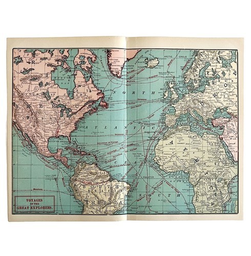 - Map Voyages Of Explorers 1899 Victorian Lithograph American History DWZ2