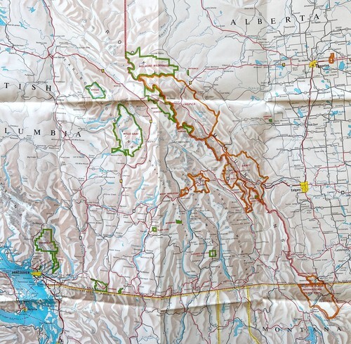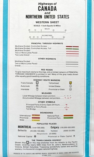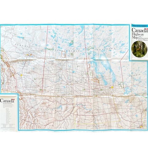 - Map Western Canada Highways NW USA 1973 Fold Out Poster Double Sided 27x38" E46