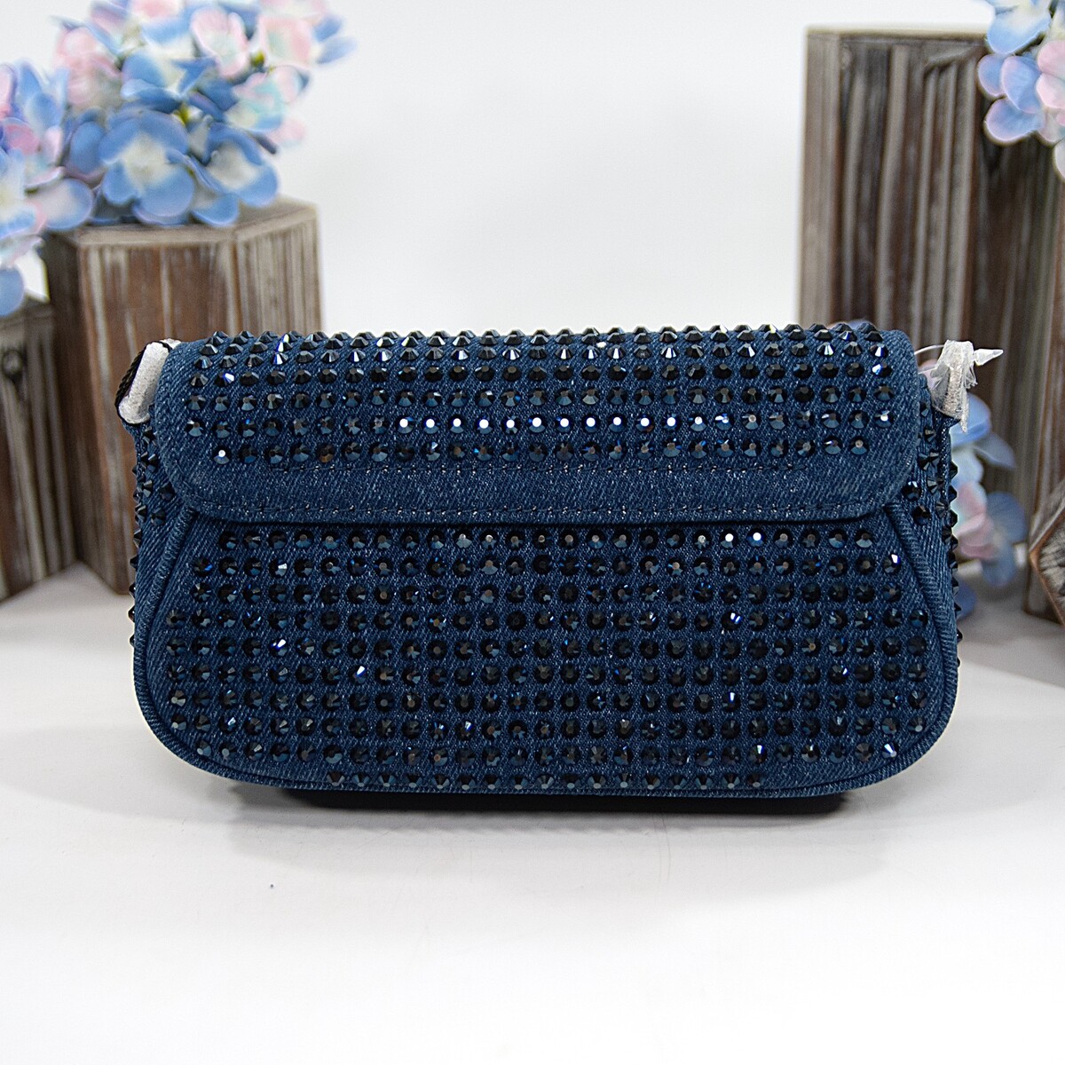 - Marc Jacobs Dark Wash Denim Crystal J Link Clover Shoulder Bag NWT $250