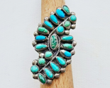 This product is a rare and unique Navajo-made 925 sterling silver ring featuring multicolor turquoise stones, crafted by artisan MARCO BEGAYE. The ring is handmade in the United States, showcasing the traditional Native American design and cultural significance. With a size of 6.5, this collectible piece embodies the rich heritage and artistry of Native American jewelry-making.