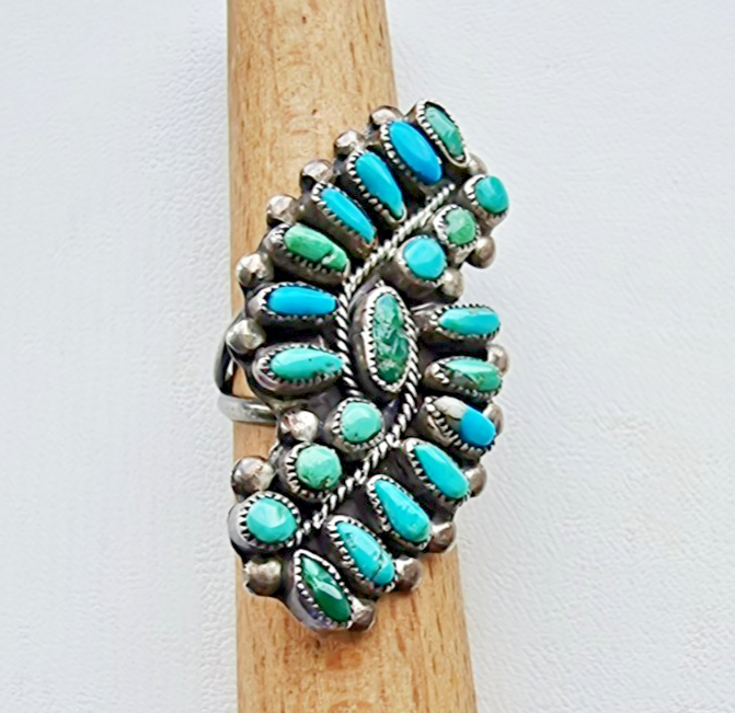 - MARCO BEGAYE NAVAJO RARE 925 STERLING SILVER MULTICOLOR TURQUOISE RING SIZE 6.5