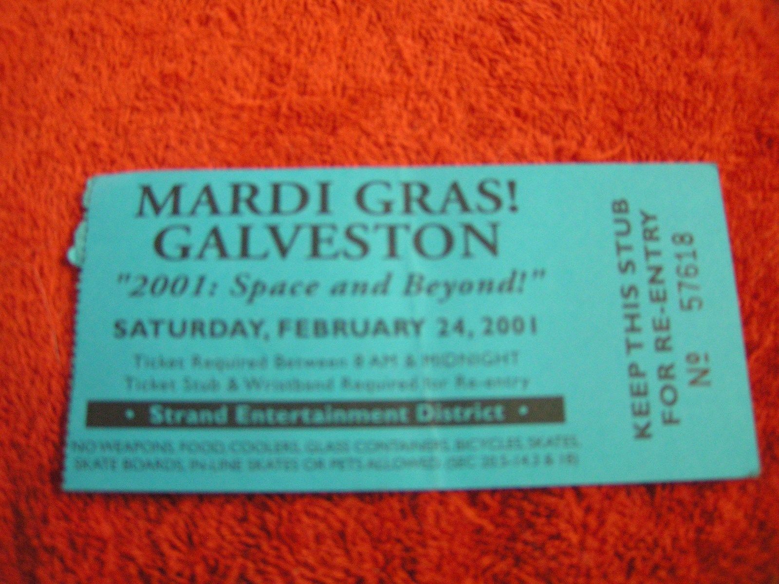- Mardi Gras Galveston 2001 Space and beyond Texas 2/24/2001 Ticket Stub