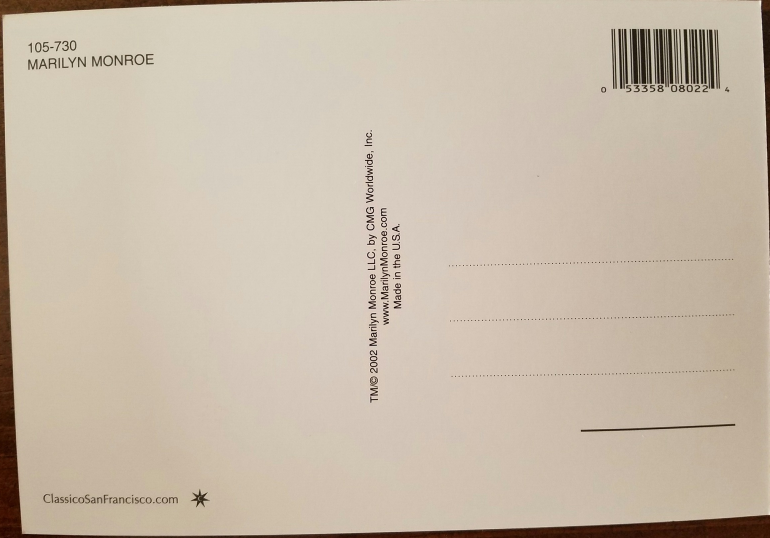 This is a 6" x 4" 2002 postcard of Marilyn Monroe. Made in the USA. In excellent condition.