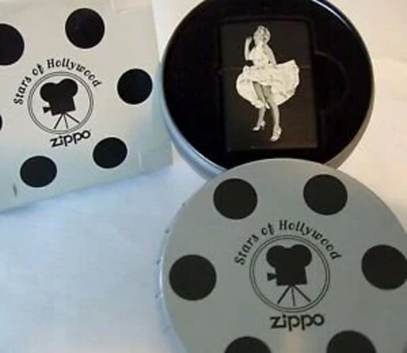The product is a Zippo lighter featuring a design inspired by Marilyn Monroe's famous white dress, symbolizing the glamour and elegance of Hollywood stars. Made in the United States, this collectible lighter is perfect for fans of Marilyn Monroe and Hollywood memorabilia. Not only does it serve as a functional lighter, but it also holds sentimental value as a piece of iconic pop culture history.
