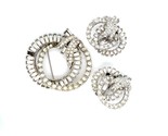 Broche d'epingle et boucles d'oreilles de baton dans une conception tourbillonnante de strass.