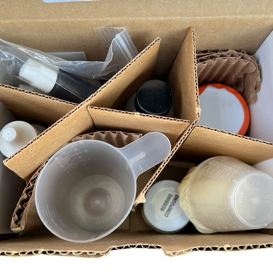 Note the acetone bottle is empty and the Gel Coat was opened, so this is 'good condition' for those reasons.