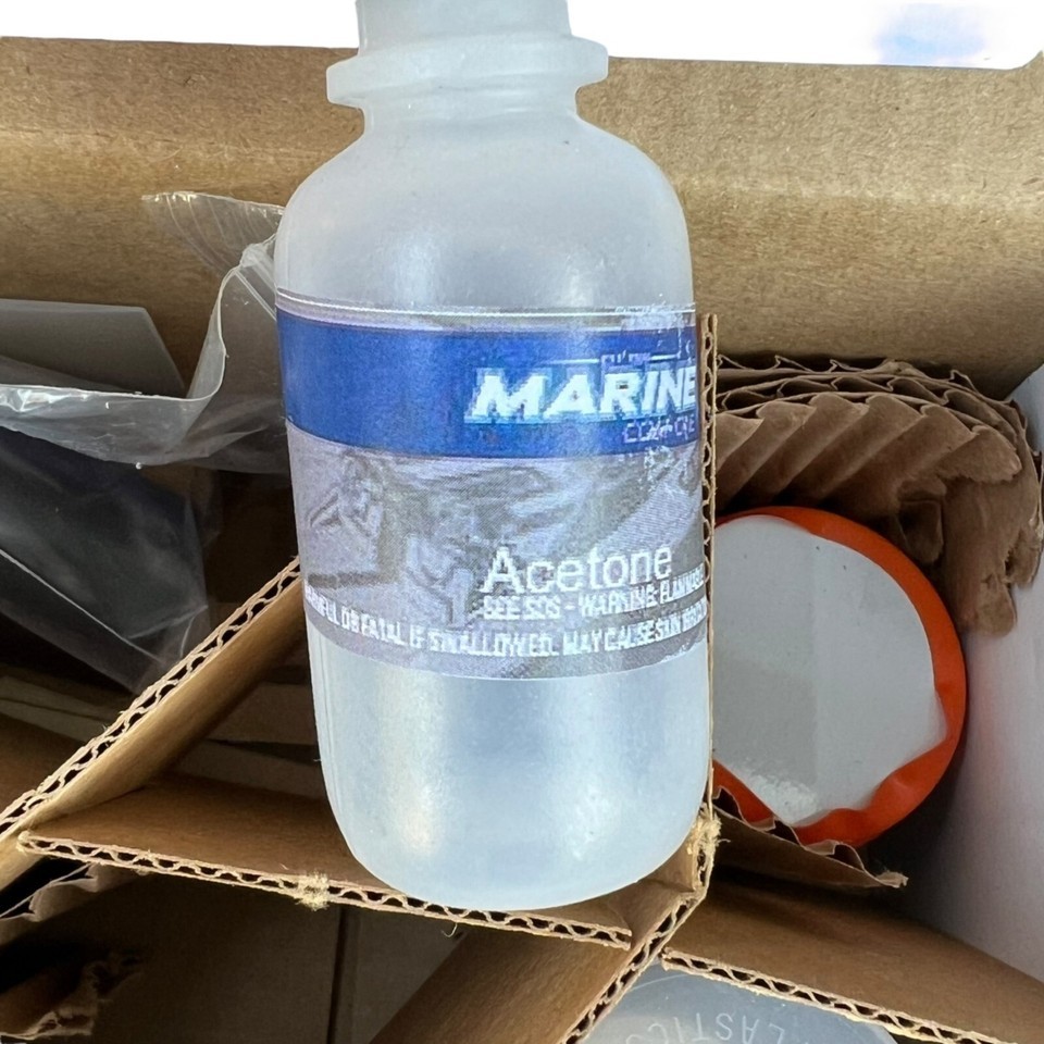 “Acetone bottle is empty, Gel Coat has been opened.” |