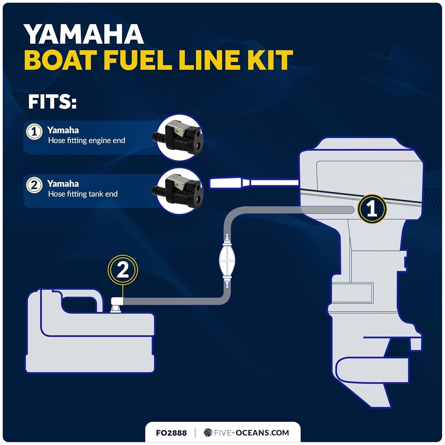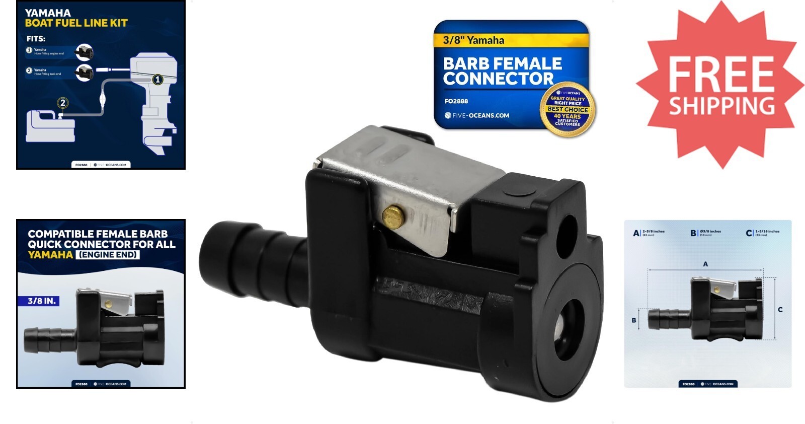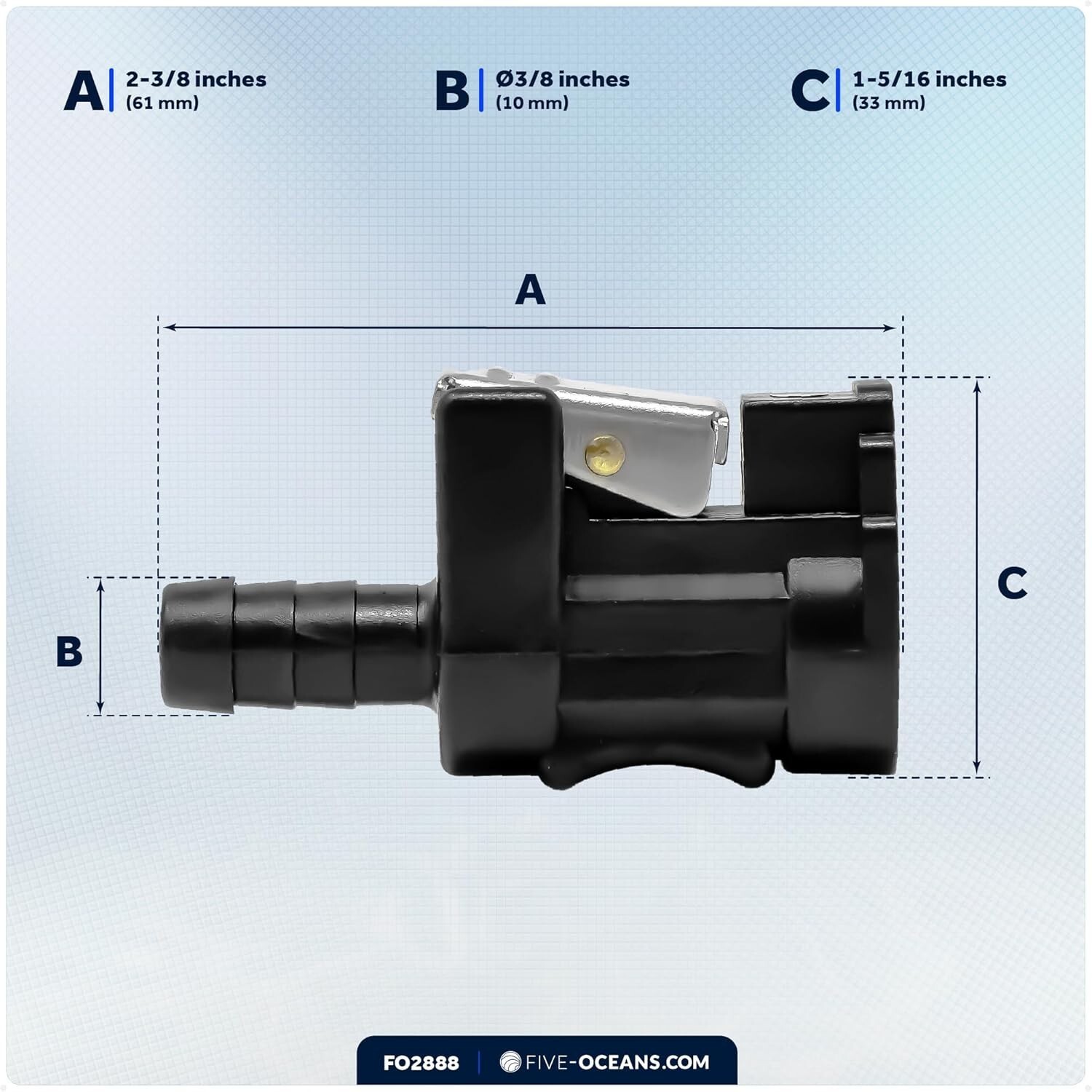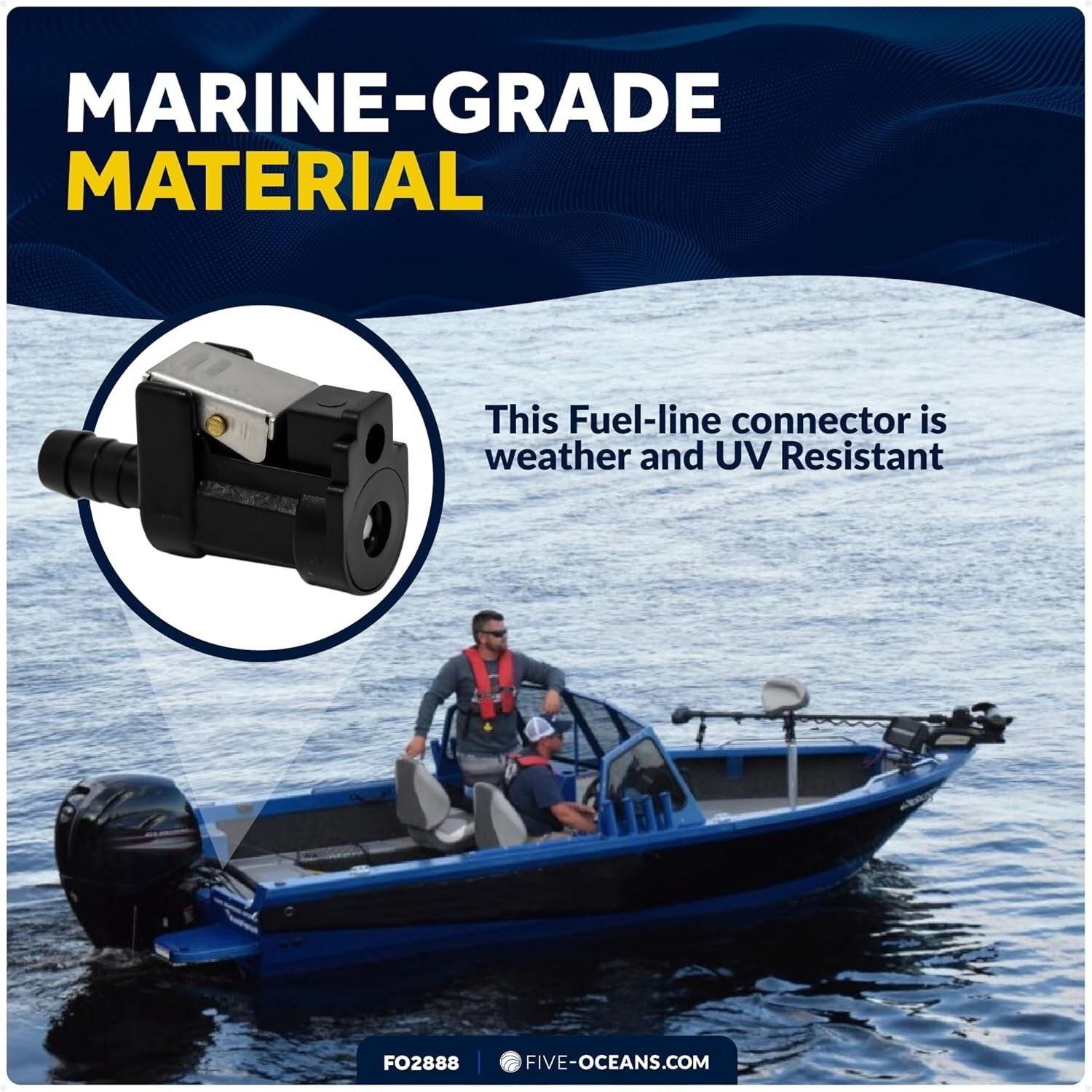 Upgrade your marine fuel system with the trusted Five Oceans Marine-Grade Fuel Line Connector, designed to fit 3/8" hoses and all Yamaha male fittings. Crafted from weather- and UV-resistant materials, it ensures durability in harsh marine environments. Easy to install with a female quick connector and 3/8" barbed fitting?no special tools needed?this reliable replacement restores safe, leak-proof connections for your boat. With over 40 of experience in high-quality marine products, Five Oceans guarantees optimal safety and performance.