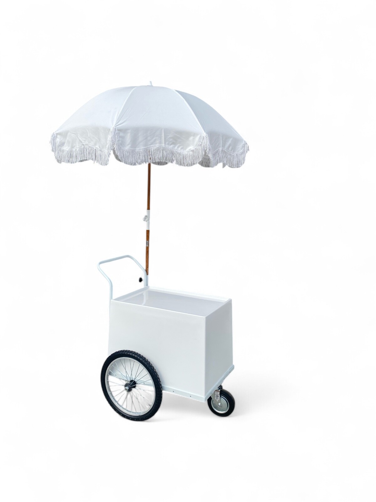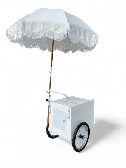 ALL WHITE CART WITH WHITE UMBRELLA INCLUDED.
