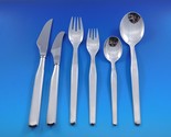 Exceedingly rare Marski by Tapio Wirkkala (Finland) .916 sterling silver Flatware set with modern elongated handles and unique shaped stainless blades - 48 pieces. This set includes: