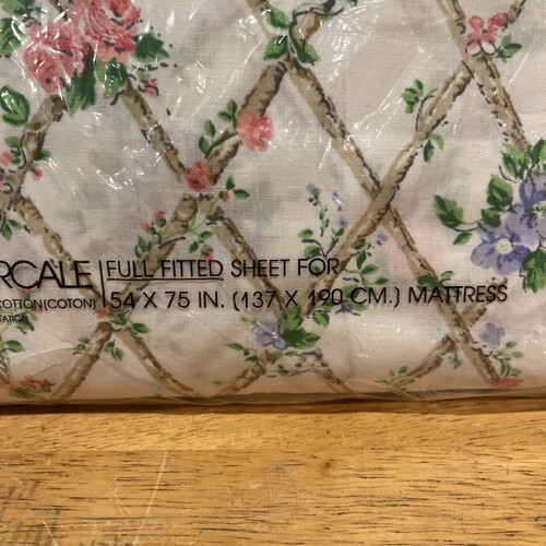 - Martex Full Fitted Sheet NOS Vintage Sealed Mod Floral Roses Trellises