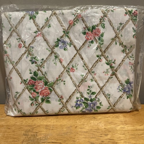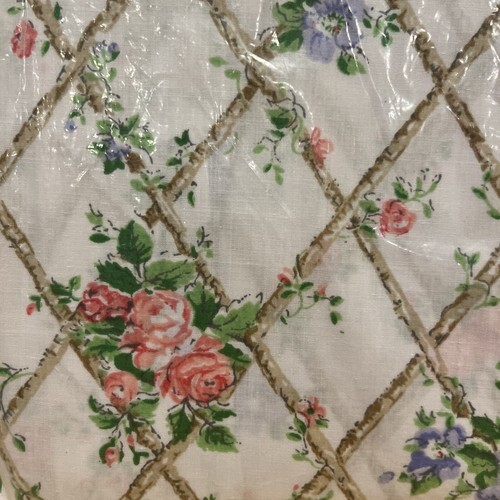 Martex Full Fitted Sheet NOS Vintage Sealed Mod Floral Roses Trellises