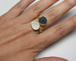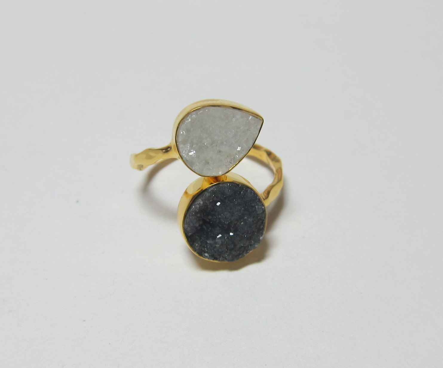 - Marz Gems Gold Plated Sterl. Silver Black & White Druzy Gemstone Adjustable Ring