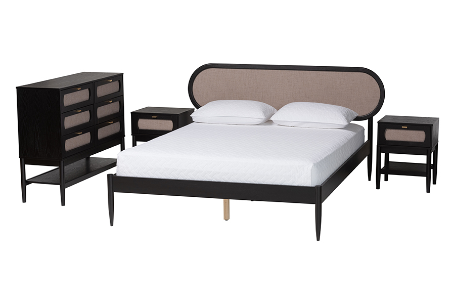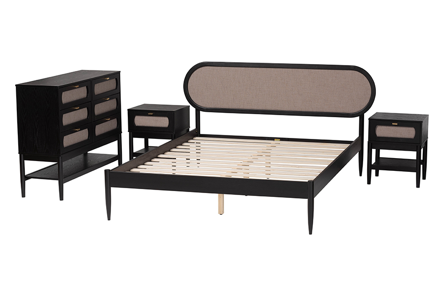 - Marzenia Beige Fabric and Black Wood Queen 4Pc Bedroom Set w/Two nightstands