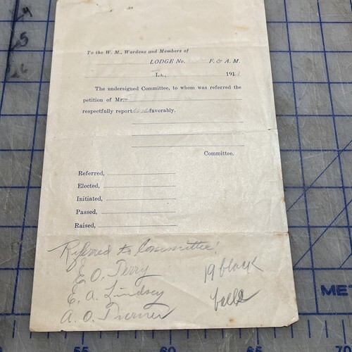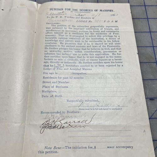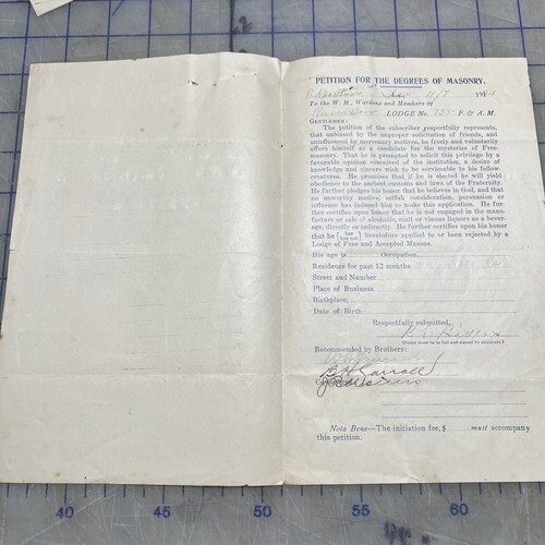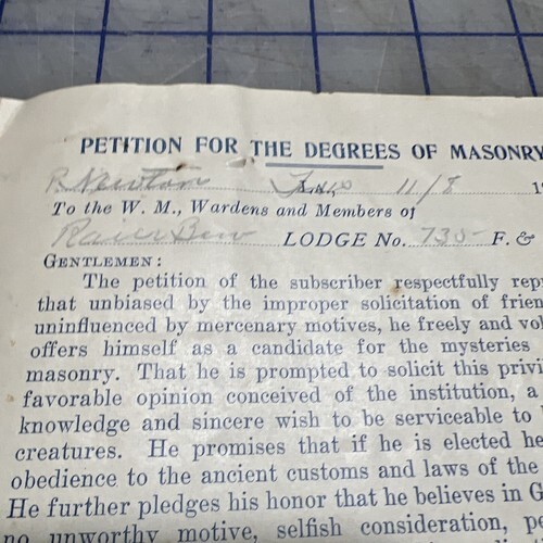 - Masonic Ephemera Petition For The Degrees Of Masonry 1921 Paper Lodge 735