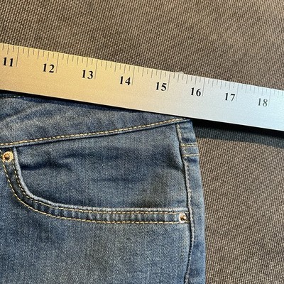 The Massimo Dutti Jeans Women's 8 Medium Wash Denim Bootcut is a relaxed fit pair of jeans made from denim fabric with a medium wash. They feature a solid blue color and a zip closure, perfect for a casual western or hippie style. With a mid-rise and bootcut design, these jeans are a versatile and comfortable addition to any woman's wardrobe.