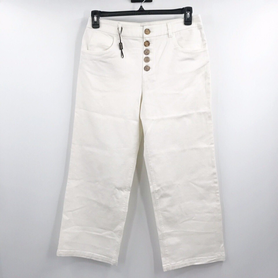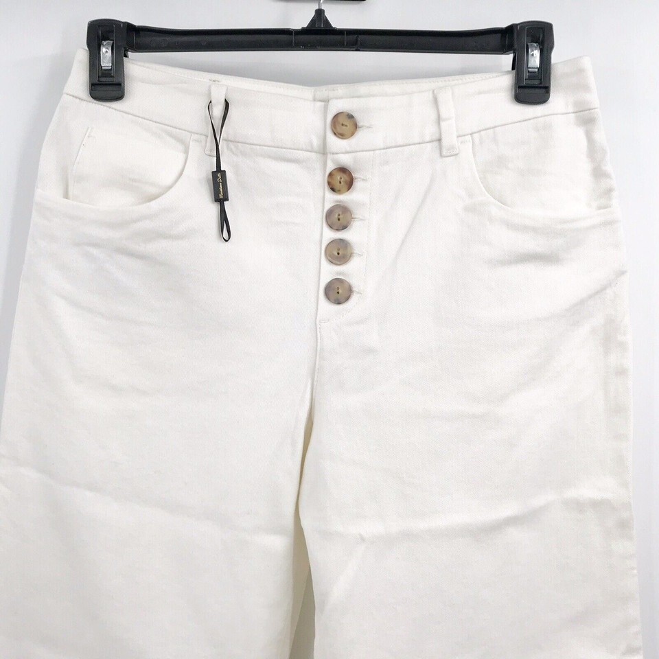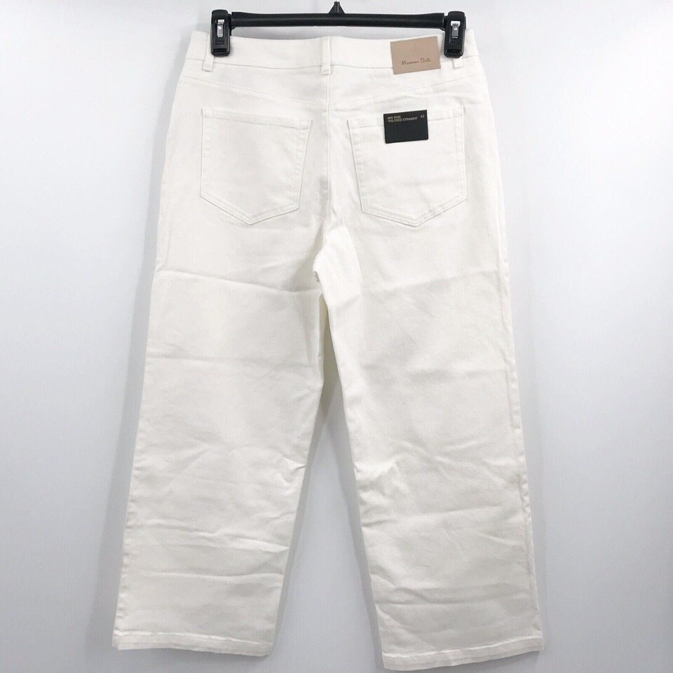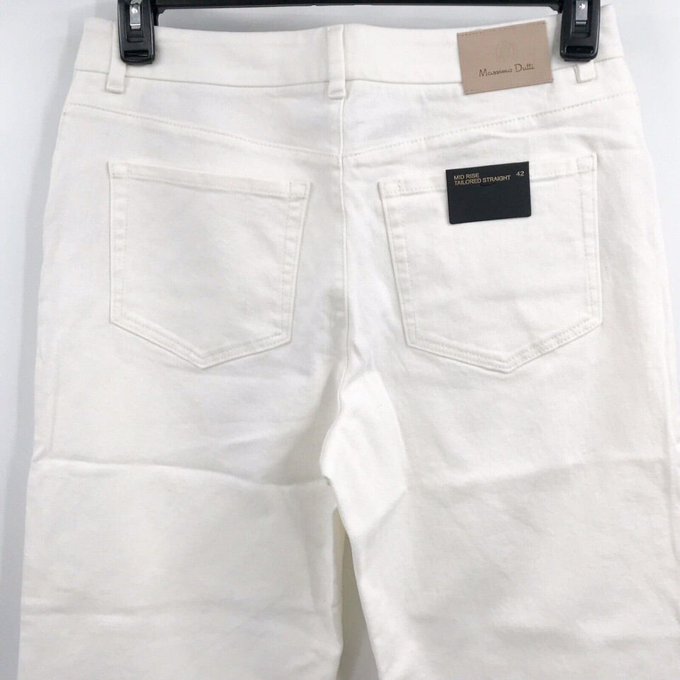 - Massimo Dutti Size 10 Mid Rise Tailored Straight Leg Button Off White Jeans