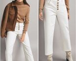 Massimo Dutti Women's Size 10 Mid Rise Tailored Straight Leg Button Off White Jeans