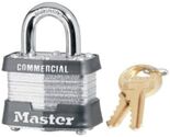 1-1/2", Laminated Padlock,, Keyed Alike To Key #3303, 3/4" Shackle, 9/32" Shackle Diameter, Uses Master Lock Key Blank K1BOX Or Alco Blank M1 TV #320-952, Boxed. The product is manufactured in China. Easy installation and easy handling.