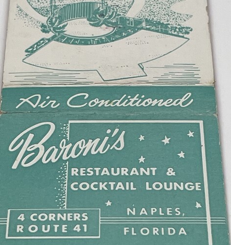 - Matchbook Cover Baroni’s Restaurant & Cocktail Lounge Naples, FL Unstruck gmg