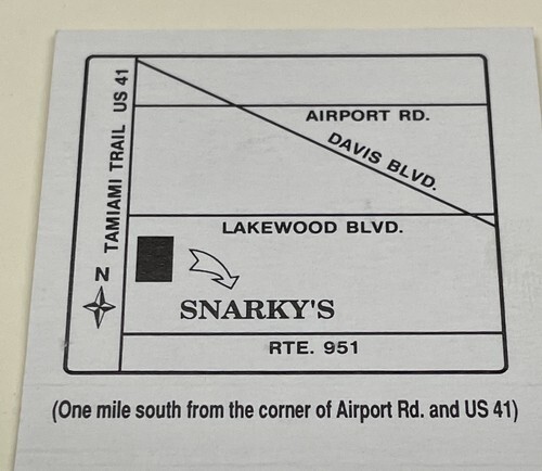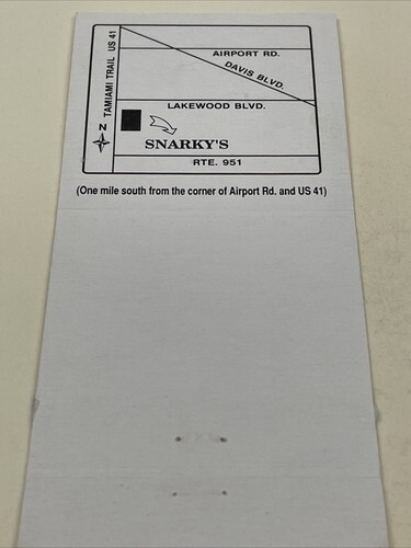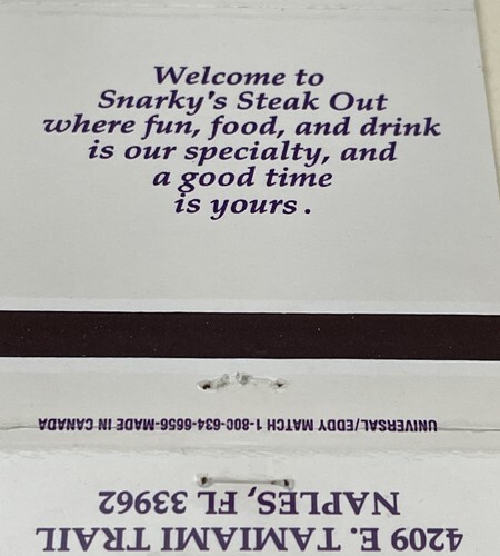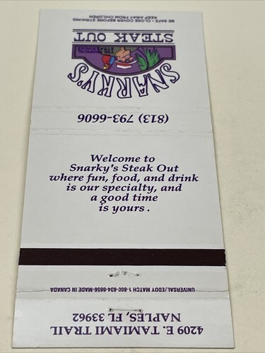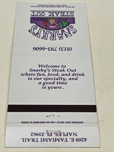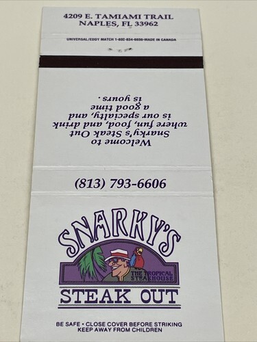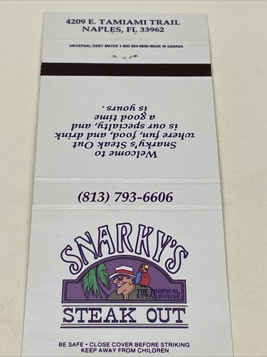 - Matchbook Cover Snarky’s Steak House. The Tropical Steakhouse Unstruck gmg