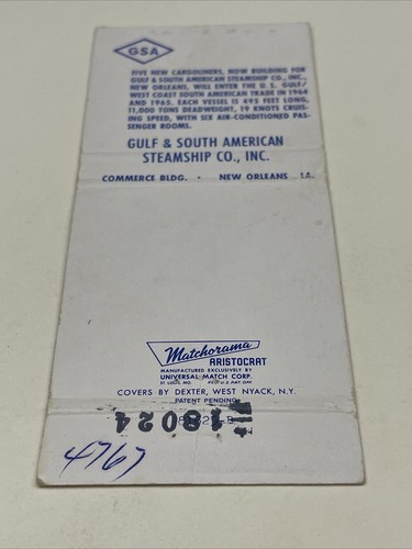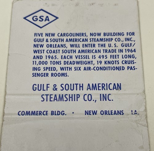 Matchbook Covers Gulf & South American Steamship Co. Vintage Unstruck gmg