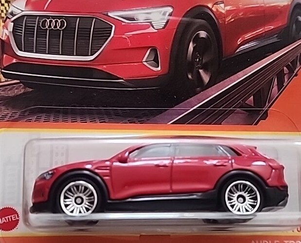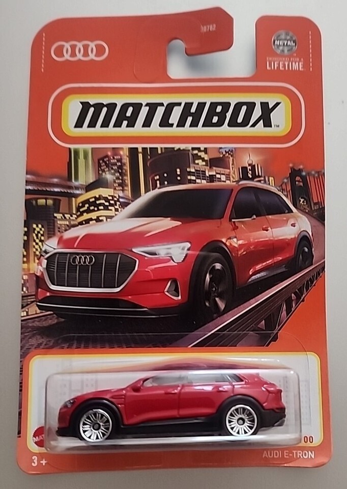 Matchbox Audi E-Tron red in New condition. Bottom of the card may be slightly bent