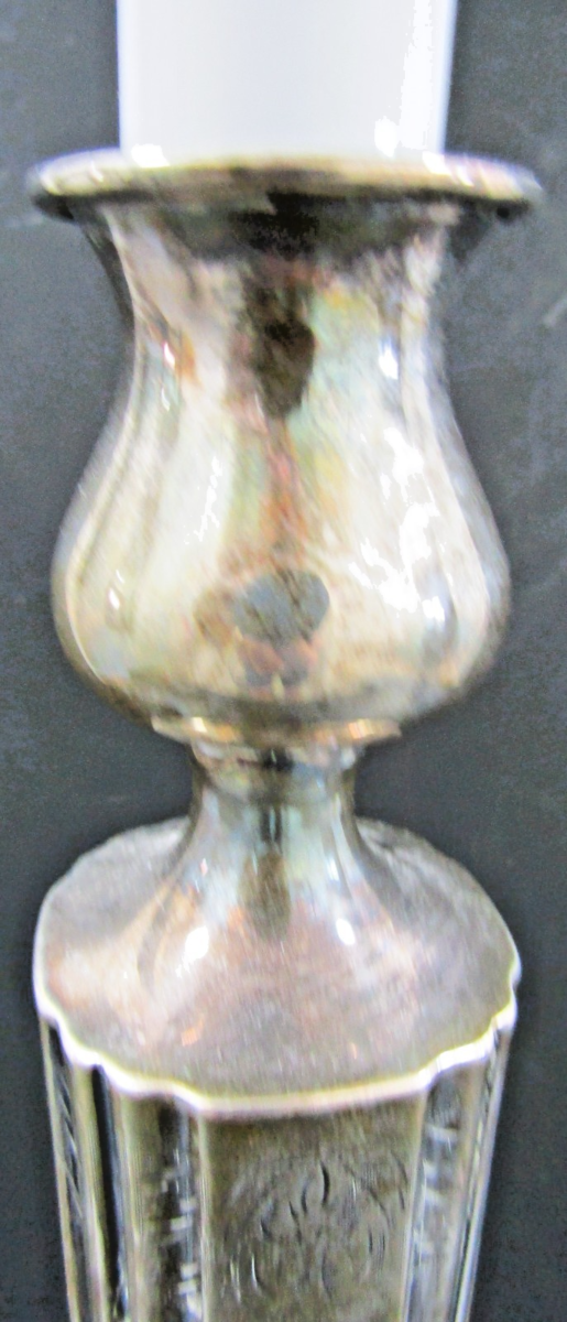 - Matched Pair of Sterling Silver Candlestick Table Lamps with Shades