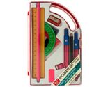 Be prepared for math and geometry classes with this 10-piece math set in a carrying case. Set includes a compass divider - 3.25" pencil - 4 rulers - 7" pencil - eraser and sharpener all in a carrying case with a hole for easy holding.