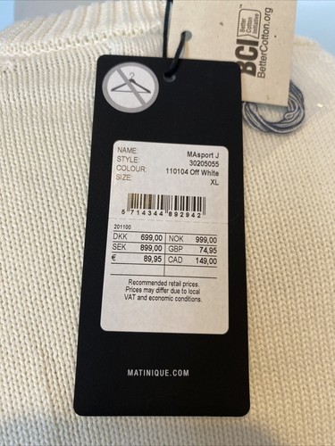 - Matinique MAsport J Off-White and Navy Knit Sweater, Men's Size XL, NWT