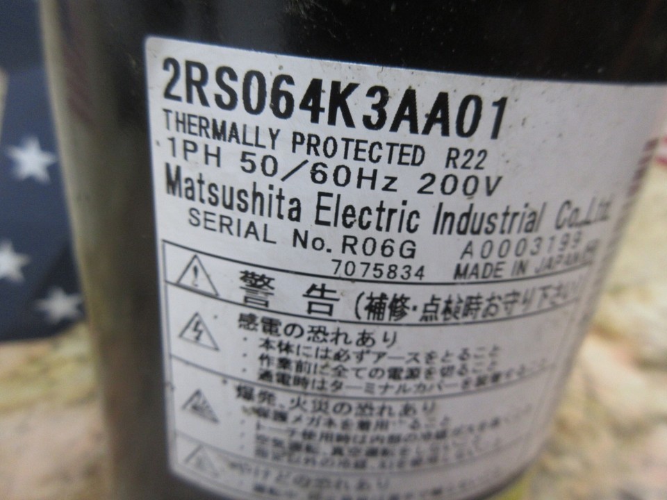 MATSUSHITA COMPRESSOR 2RS064K3AA01 R22 1PH 50/60HZ 200V A0003199