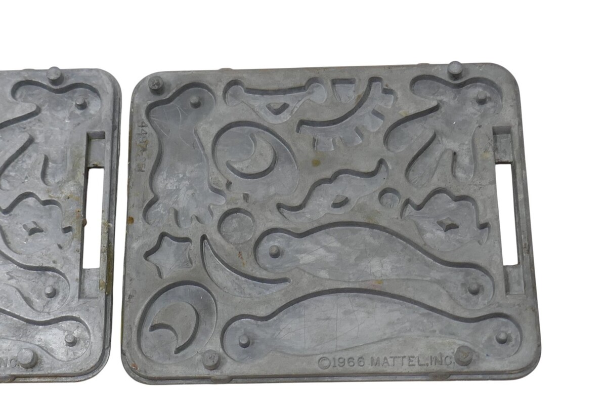 These Mattel 1966 Thingmaker Double Sided Molds are vintage molds that allows children to create their own creations with Plastigoop. This has some wear from use and age. Released in 1966, this classic toy from Mattel offers a fun and creative way for kids to engage in imaginative play. With its retro design and brand history, this set is sure to delight collectors and enthusiasts of vintage toys.