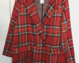THIS IS A NICE LADIES MAURICES RED PLAID STRETCH KNIT JACKET/BLAZER IN A SIZE 2XL. IT IS NEW, WITH TAGS ATTACHED AND PRICE OF $49.90.