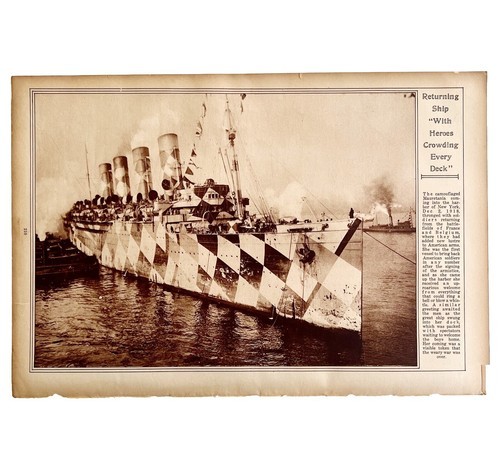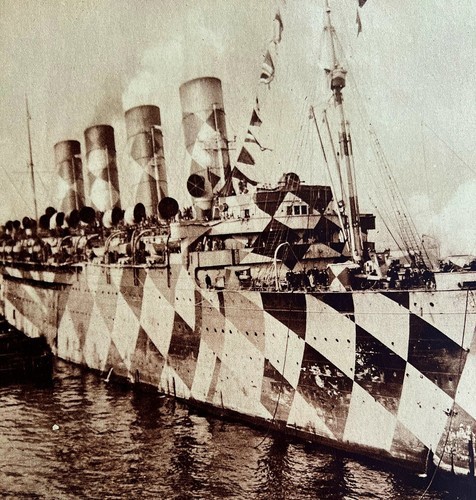 - Mauritania Camo Battleship New York Harbor 1920s WW1 Navy Military GrnBin2