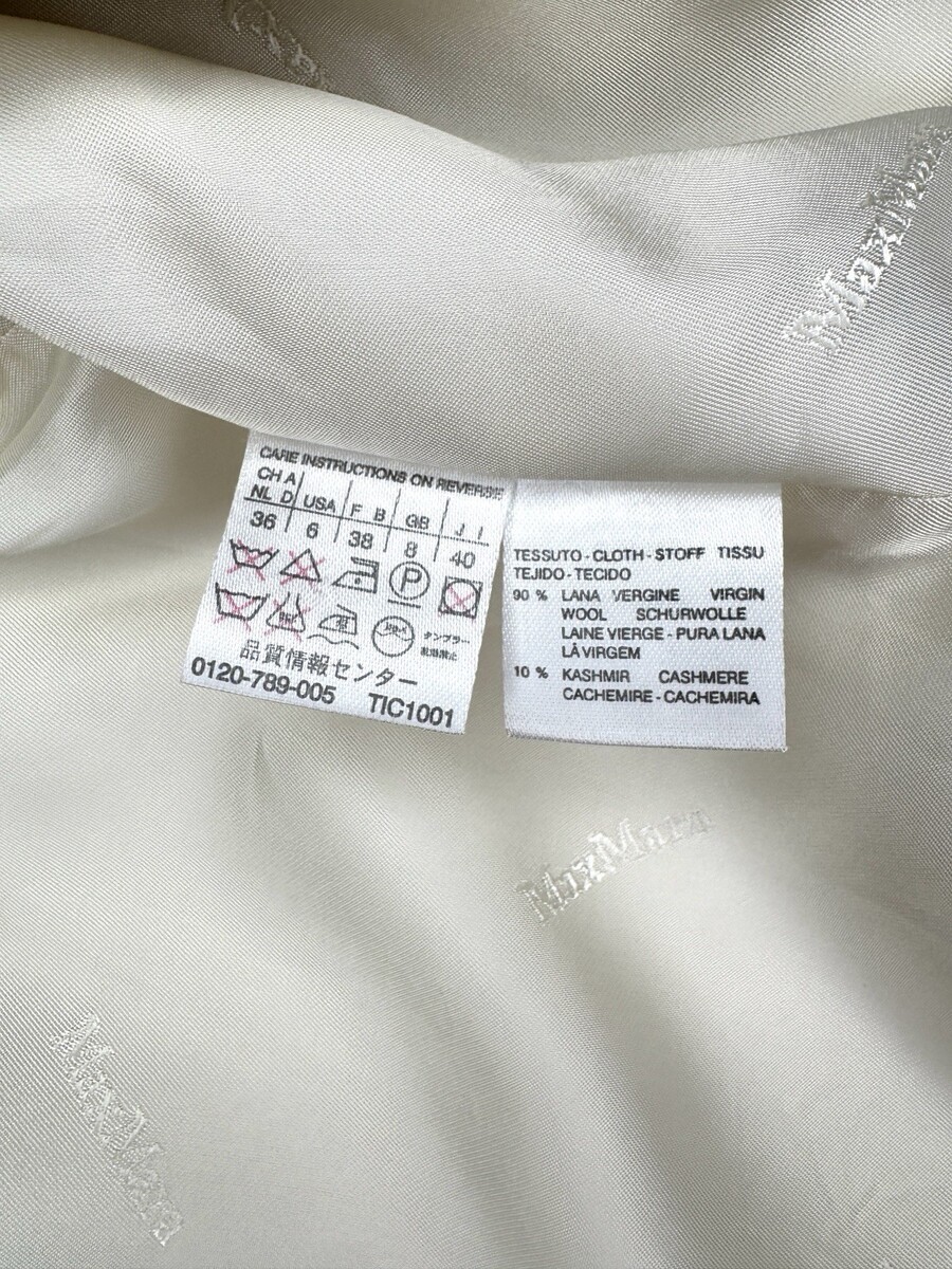 - Max Mara Size 6 Wool Cashmere Coat Cream White Jacket