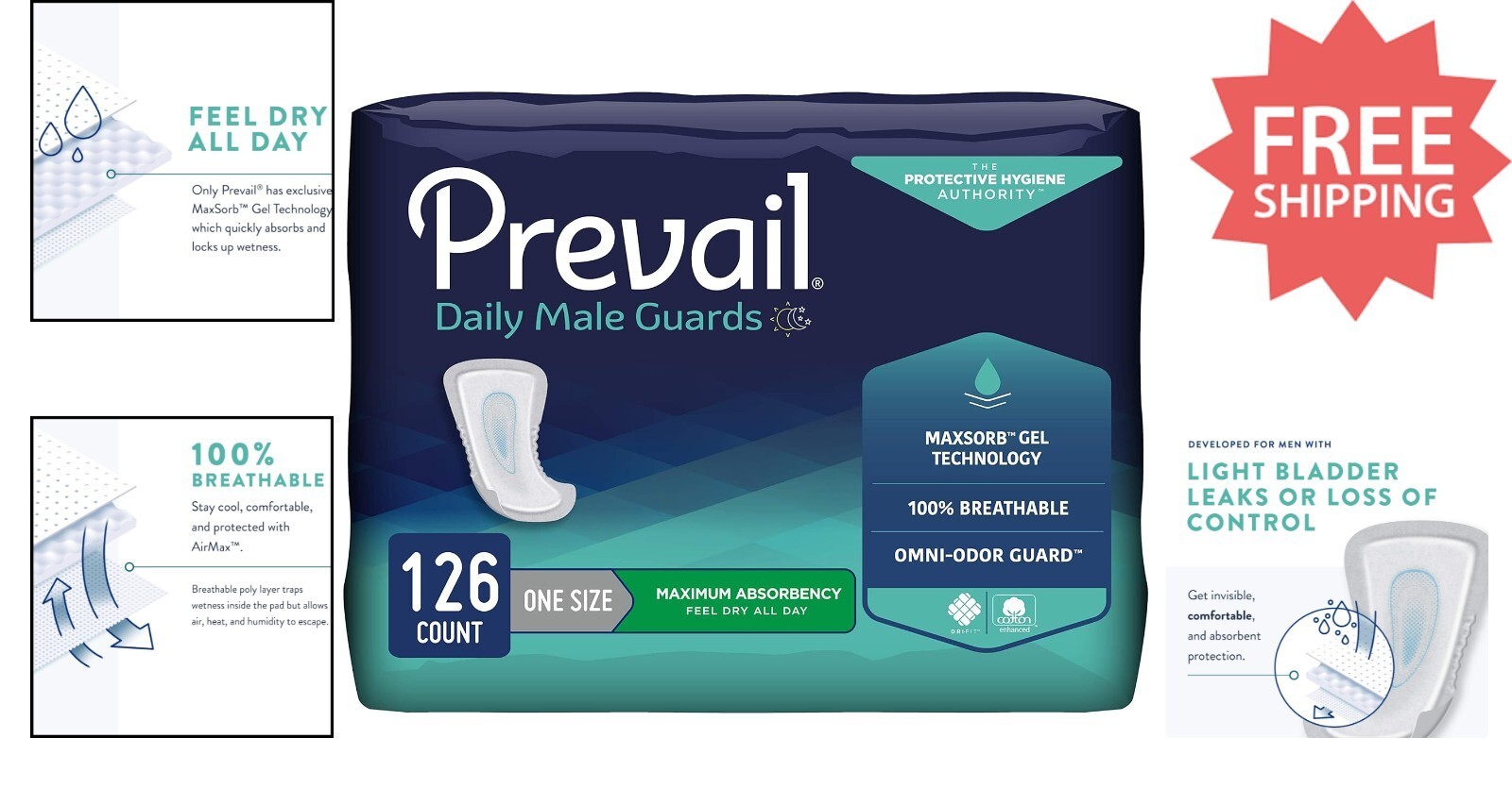 Experience discreet, reliable protection with Prevail Male Guards?designed specifically for men requiring maximum absorbency. Featuring a contoured cup for a natural, comfortable fit, these guards provide exceptional leakage protection during the day or overnight. Advanced MaxSorb Gel core and Omni-Odor Guard neutralize odors instantly, ensuring freshness. The innovative design includes a Quick Wick layer for moisture management, flexible gathers for side leak protection, and an adhesive strip for secure placement. Crafted with comfort and skin health in mind, Prevail continues to lead in adult incontinence solutions, combining technology, quality, and discreet confidence. To ensure fast and reliable delivery, we work with multiple fulfillment partners and suppliers. Depending on availability and location, your order may ship from different warehouses or arrive in packaging that varies from item to item. Tracking details are typically provided shortly after shipment, and customer satisfaction remains our top priority.