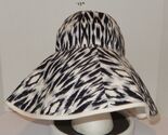 - Maxi-Brim Bucket Sun Hat Zebra Ikat Print Black White Beach Festival Logo Tag