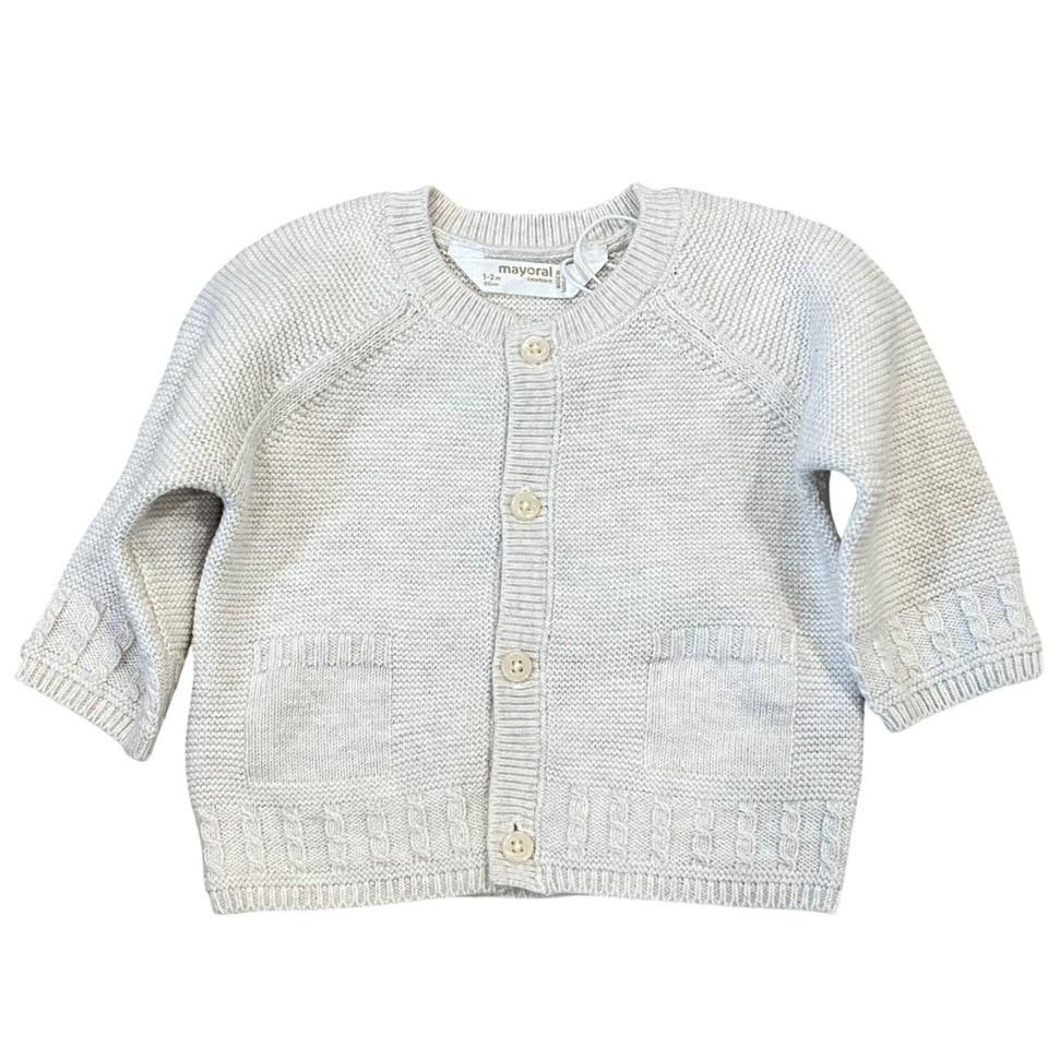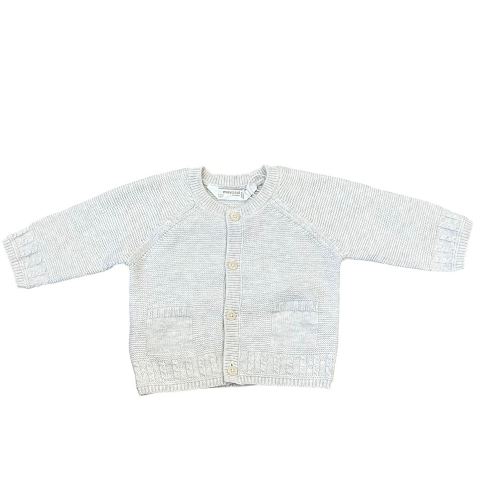 - Mayoral 4-6 Mo Baby Cardigan Beige Knit Cotton Buttoned Front With Pockets NWT