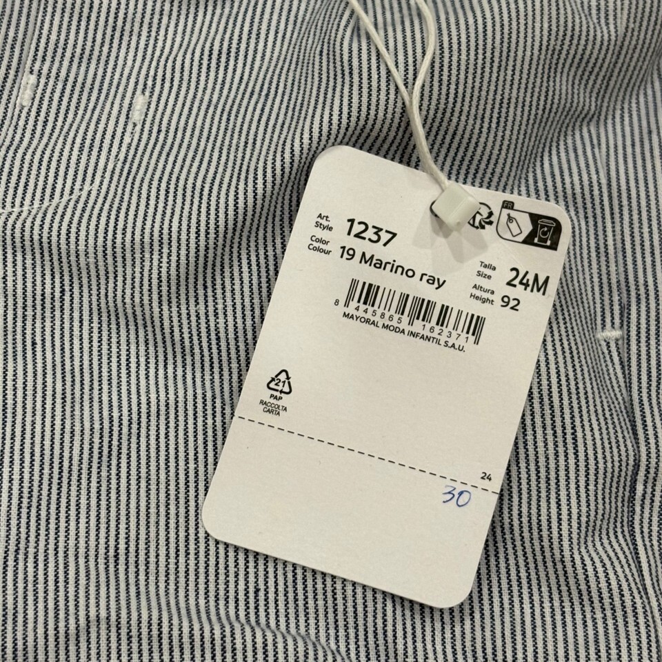 These Mayoral shorts for baby boys, size 24M, feature a classic striped pattern, providing a stylish yet comfortable option for everyday wear. The adjustable waistband ensures a perfect fit as your little one grows. Made from soft cotton, these shorts are gentle on delicate skin.