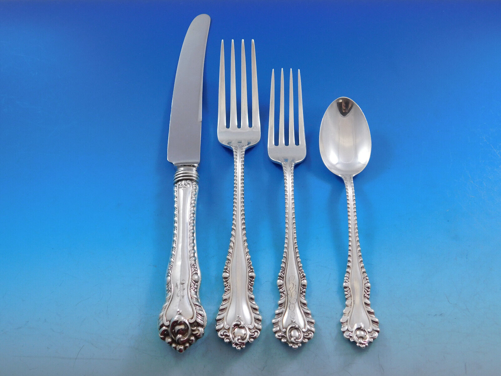Excellent condition with varying period monograms. This set will be beautifully professionally polished prior to shipping.