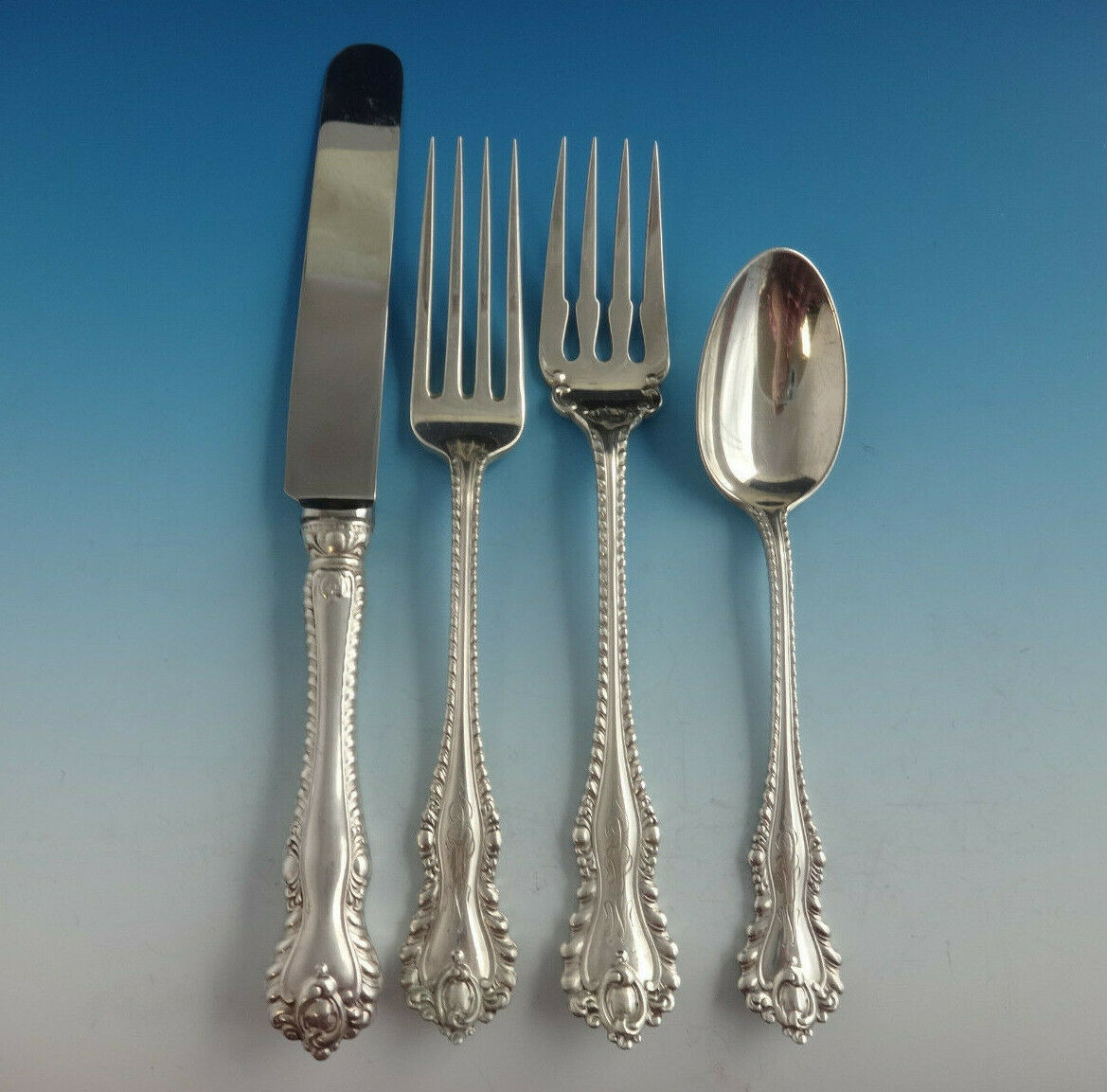 COMPLETE FLATWARE SETHOSTESS HELPERSHOLLOWWARE / TEA SETSMUSEUM QUALITY/FIGURAL SILVERFINE ESTATE VINTAGE JEWELRYMID-CENTURY MODERNSILVER FLATWARE SILVERWAREBuccellatiChristofleGeorg JensenNew Georg Jensen HollowwareNew Georg Jensen JewelryGorhamInternationalLuntMichael Aram - NewReed BartonTiffany Co.TowleWallaceWhitingPLACE SETTINGS
