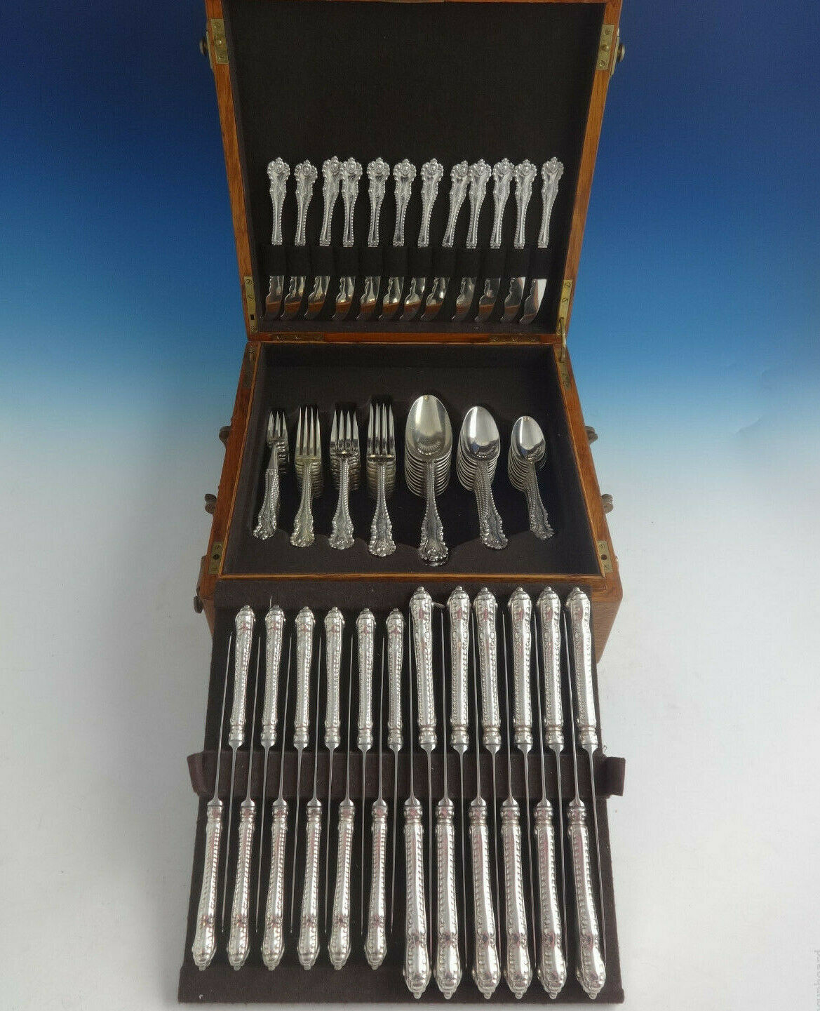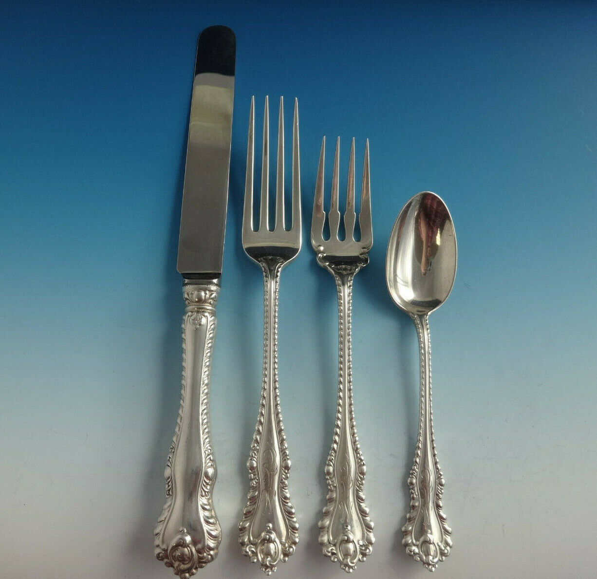 Stunning sterling silver Flatware set in the pattern MAZARIN BY DOMINICK HAFF. This set includes: