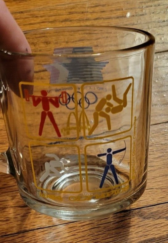- McDonalds 1984 Vintage OLYMPIC COMMITTEE Clear Glass/Coffee Mug - Set of 2